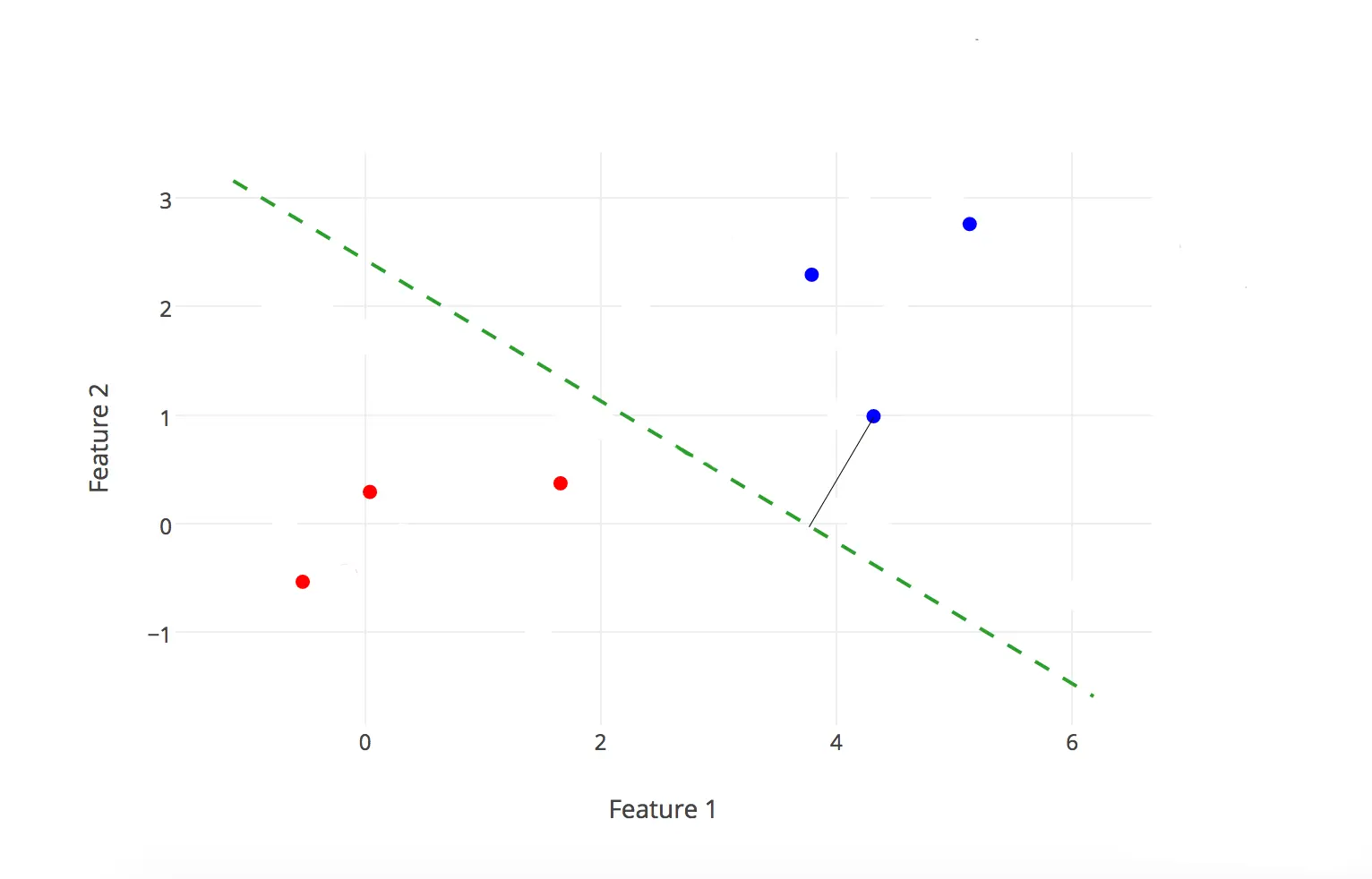 当然二分类器有很多天生的劣势。比如我们看到上图的实线分割线就不如虚线的正。就有一种感觉虚线分割的更加符合我们的期望。那我们该如何量化这种期望呢,这还得对于分类正确的确信度说起。