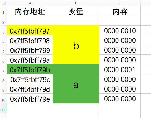 我们可以看到 b 与 a 刚好是 4 个字节。