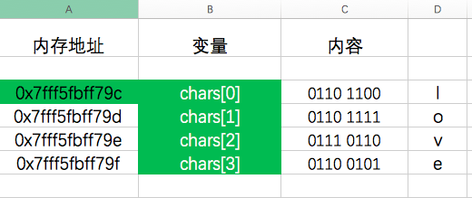 char chars[4] = {'l','o','v','e'};