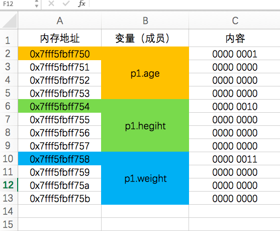 printf("%p\n",&p1.weight); //0x7fff5fbff758