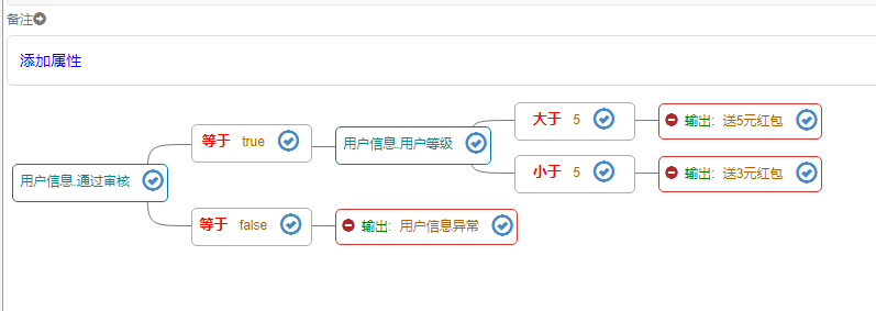 于是小叶同学二话不说把Urule整合进了自己的项目中,按照需求配置了一个一条规则树: