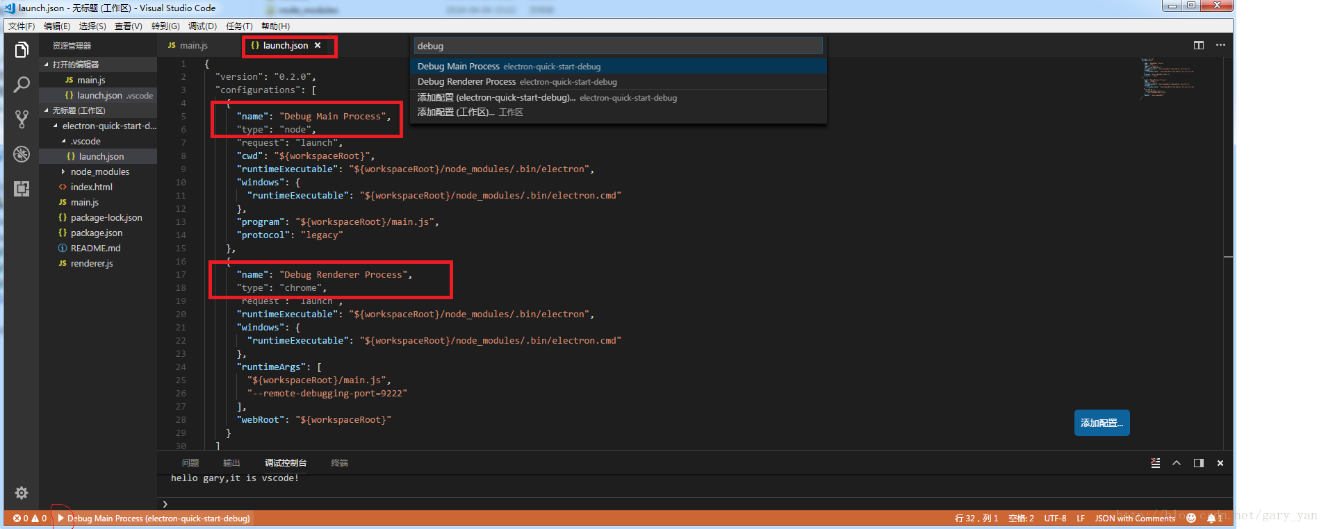 下载相应的github工程:github.com/octref/vscode-electron-debug/tree/master/electron-quick-start