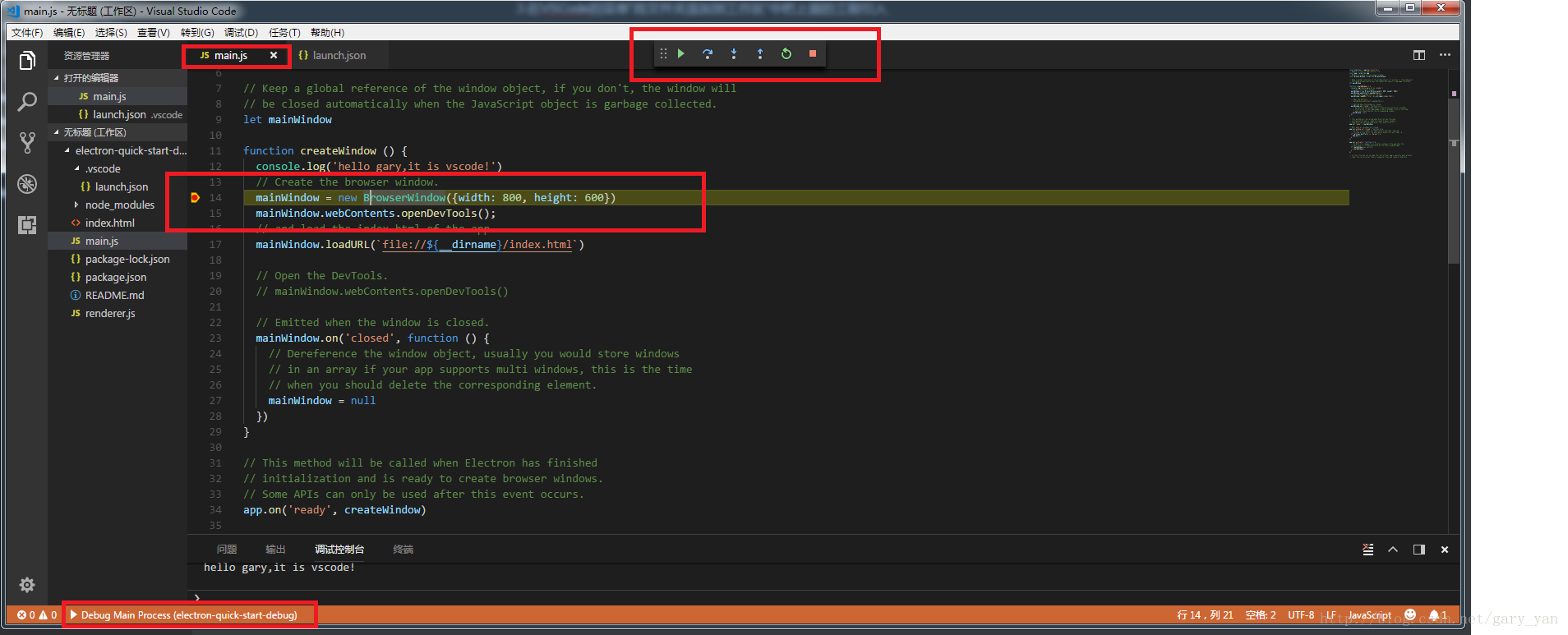 根据Electron的官方文档:使用 VSCode 进行主进程调试:https://electronjs.org/docs/tutorial/debugging-main-process-vscode