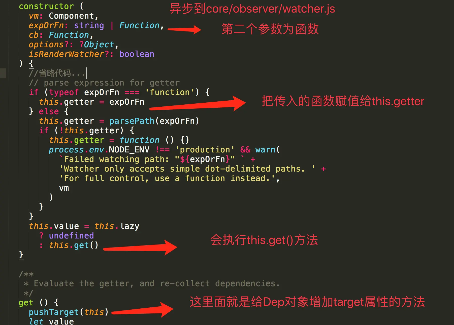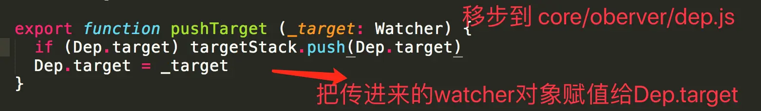 先暂停一下,上面两处都用到了 Dep.target ,我也说了它就是一个Watcher实例化对象,你是不是很想搞懂它到底在哪里赋值的呢,不急请跟着我下面的代码看看。
