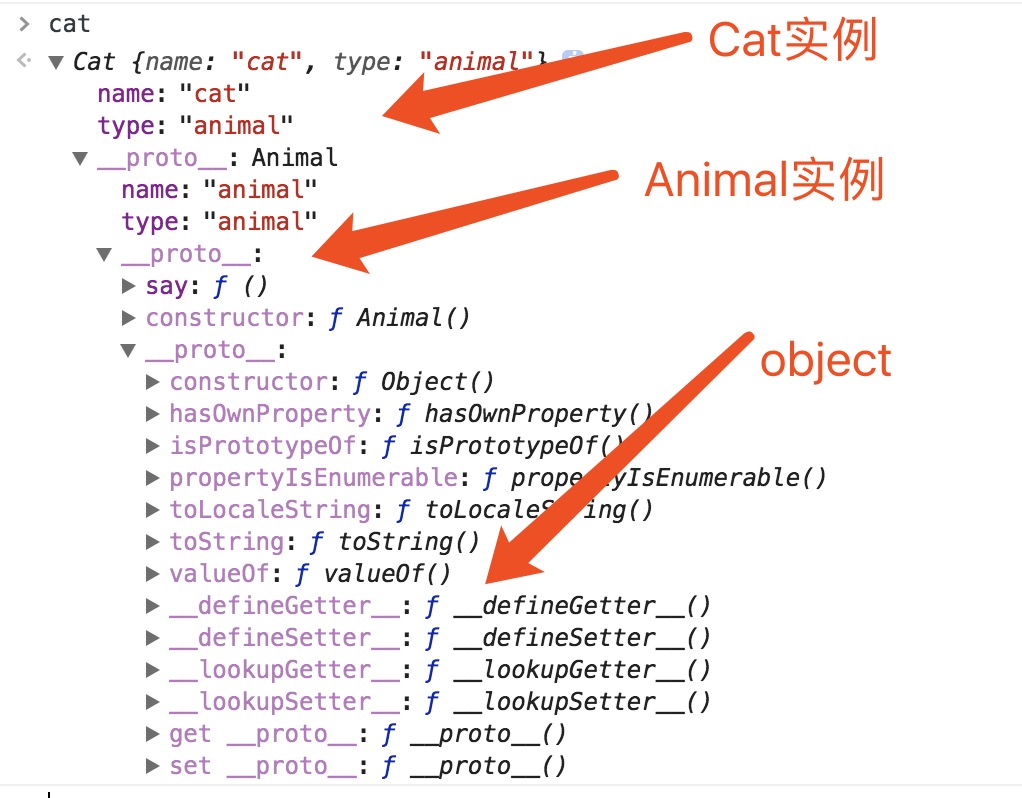 var cat = new Cat(); // 构造函数再次存储了一份父类的数据类型
