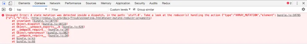 - 如果 reducer 代码抛异常了,你可以看到发生异常时的 action 和具体的错误信息。