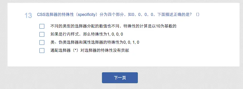 知道了这些,就知道这道题的答案了。这道题正确选项应该是2,3,4。关于css特殊性的问题,可以看看这篇文章的介绍(www.iinterest.net/2010/05/08/…