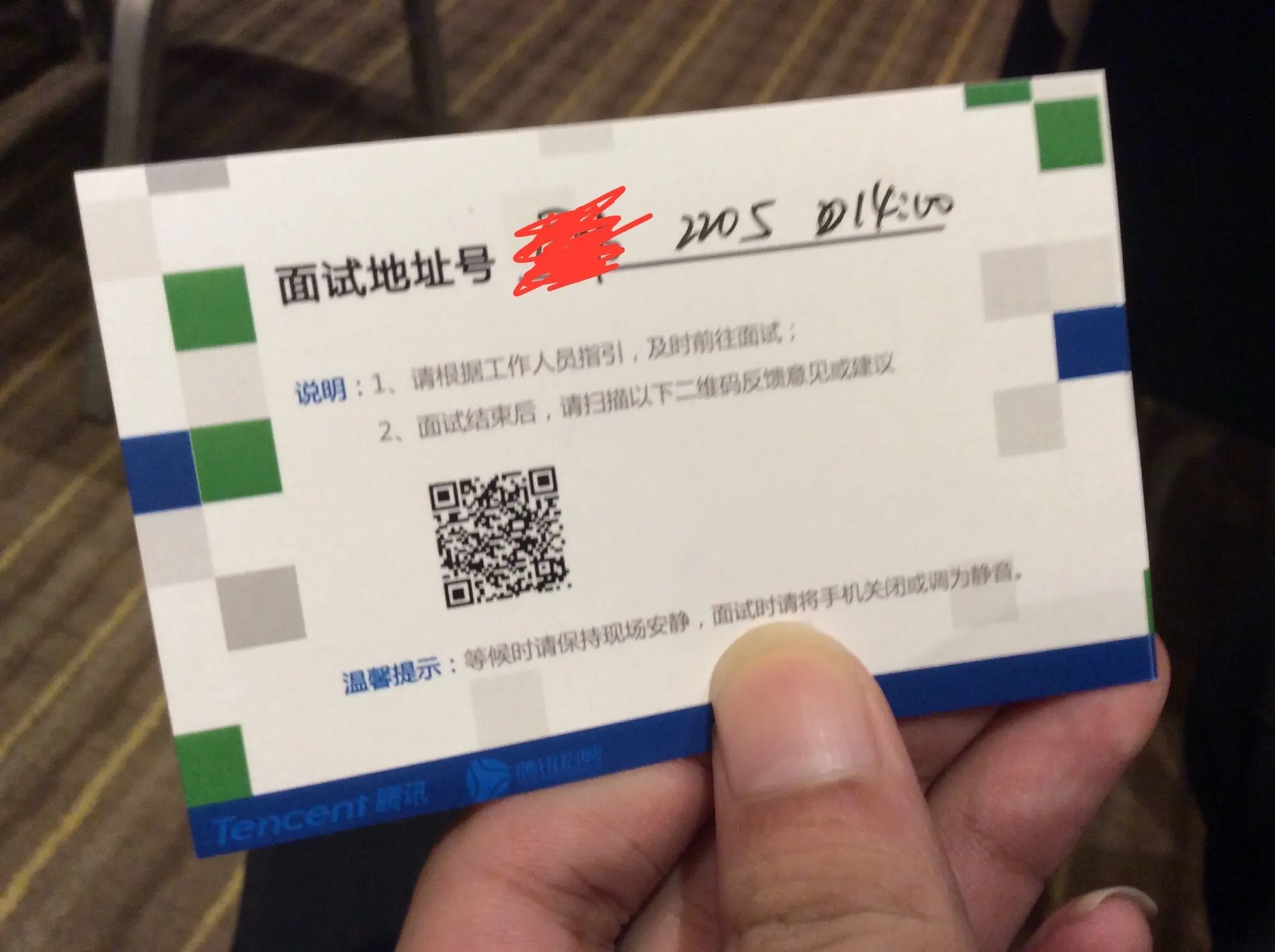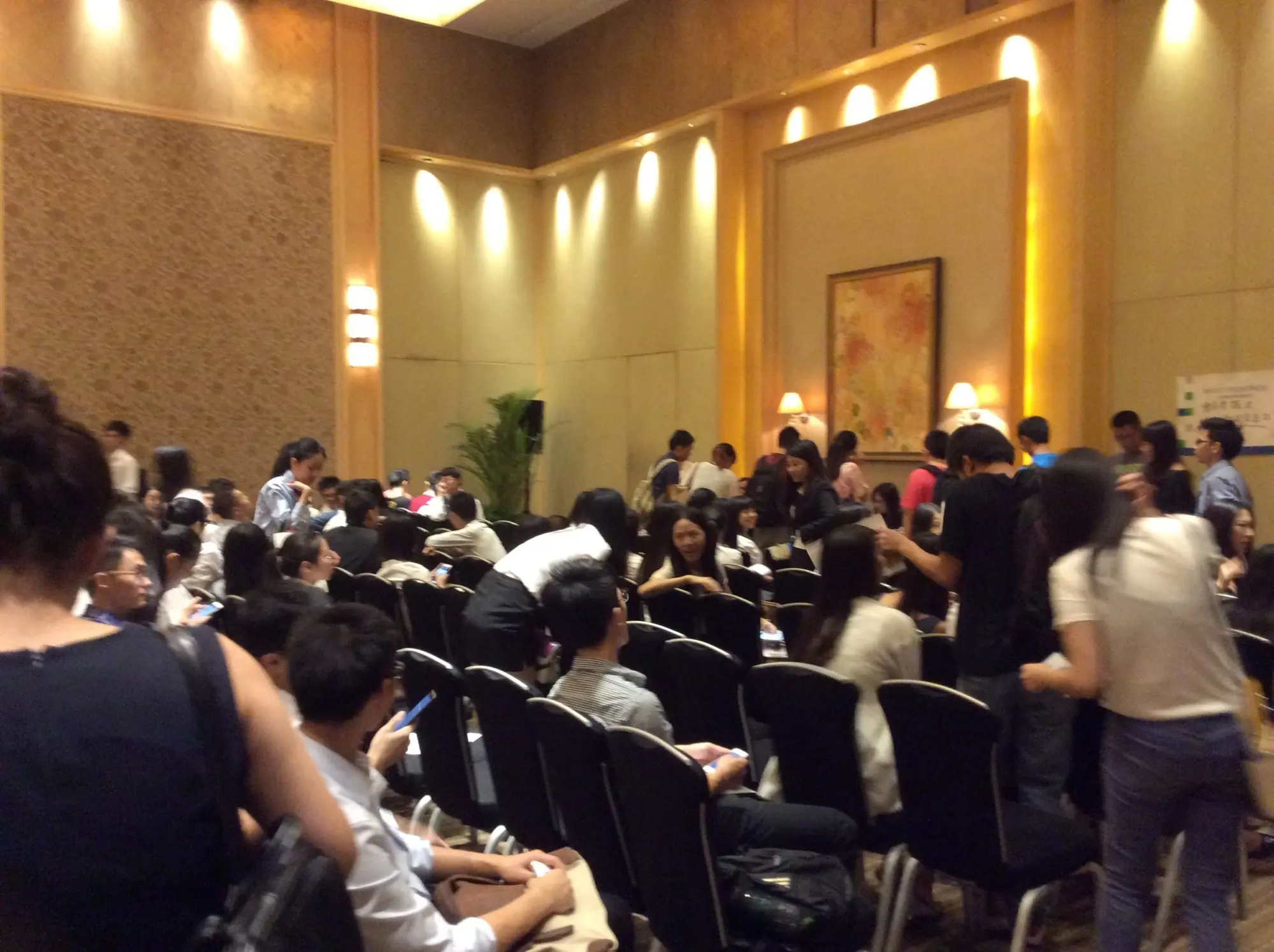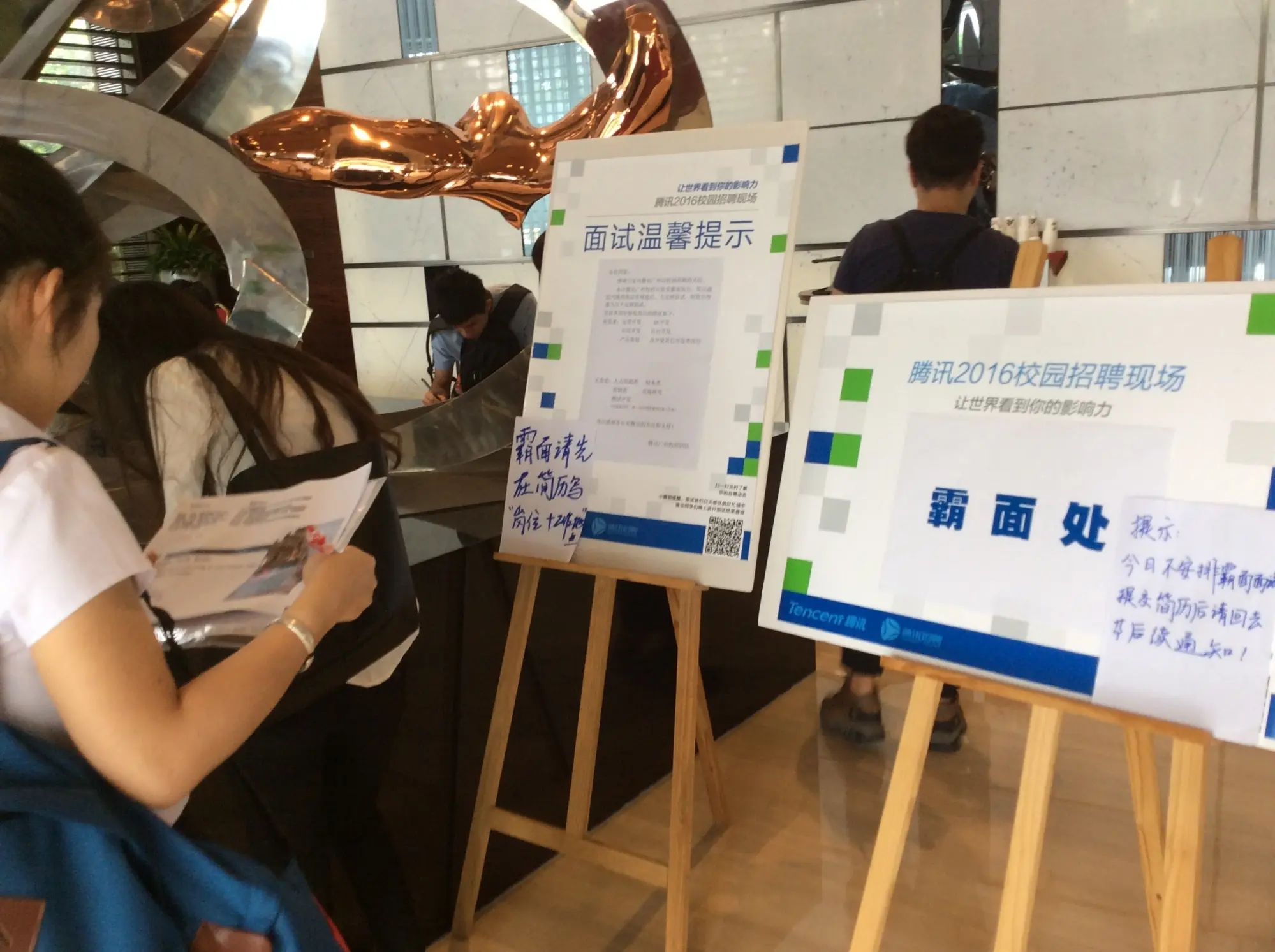 终于到了腾讯说的那家酒店。在酒店门口,站了很多人,都是来面试的。进去酒店里面,感觉人更多,酒店大堂都是面试的。大堂中间放着一个牌子,写着“罢免处”,看着我都激动了,还有这么来霸面的!在大堂转悠了一会儿,就上了二楼,来到二楼的一个大堂里面。里面人更多,大部分都是面试产品经理和市场营销的,这些人都是群面。看到这么多人,心中又有些不安分了,还没到面试,心情就紧张起来。