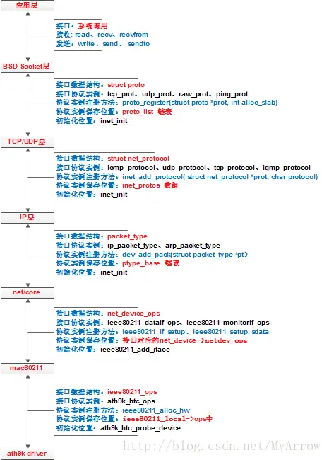 WiFi驱动架构的一般层次为: