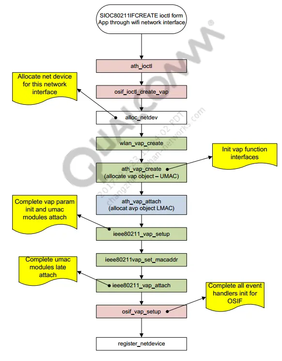 qca wlan modules中,通过创建虚拟AP来实现WiFi功能,即VAP: 创建VAP的命令如下:
