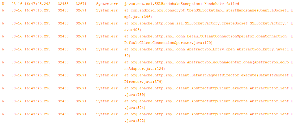 Android6.0版本的,升级后,在测试我们的应用时,突然出现握手失败错误: