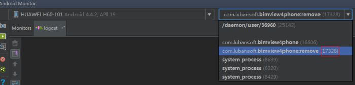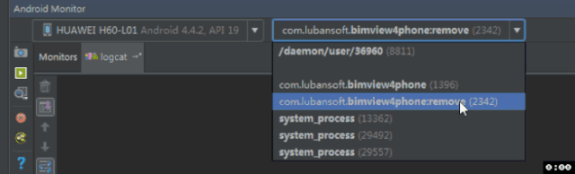 演示一下:以我自己的项目为例,app中有两个进程,一个是主进程,另一个是运行service的进程取名为:remote。首先用android studio查看每个进程的PID: