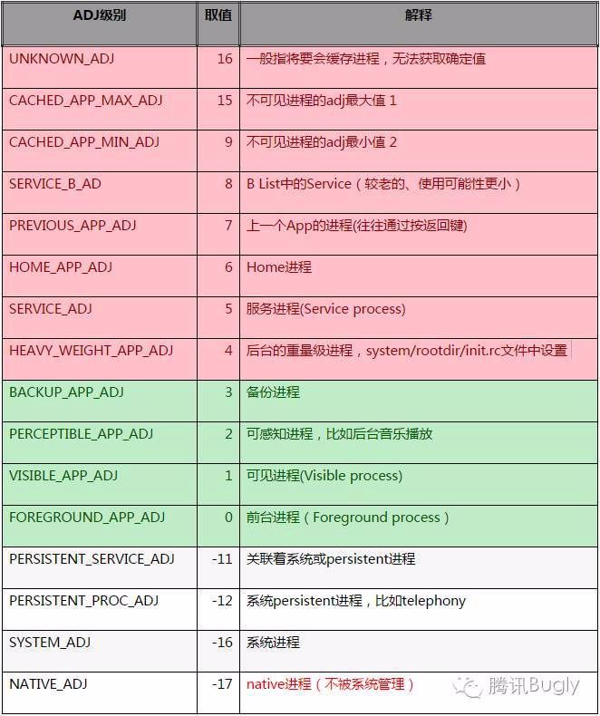 处理这种情况前提是你的app至少运行了一个service,然后通过Service.startForeground() 设置为前台服务,可以将oom_adj的数值由4降低到1,大大提高存活率。