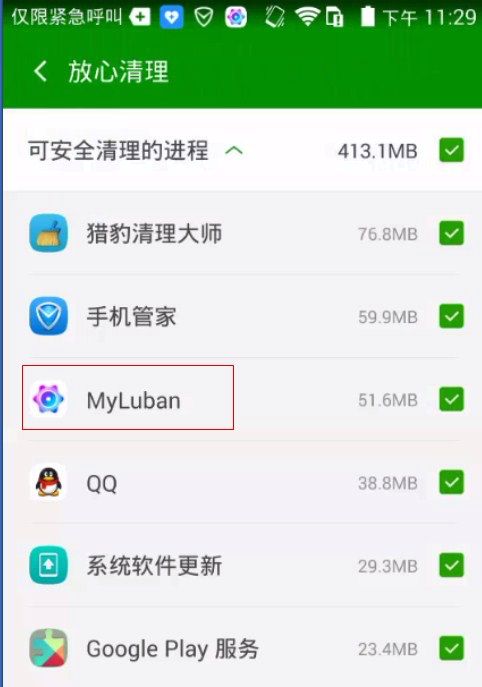 清理内存软件会把 优先级低于 前台进程(oom_adj = 0)的所有进程放入清理列表,而当我们打开了清理软件就意味着其他app不可能处于前台。所以说理论上可以kill任何app。以360安全卫士为例,打开内存清理: