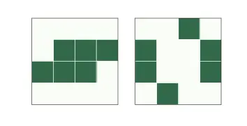 其中最简单的是 r-pentomino,它只有五个细胞,形状大致为字母“r”。 图?显示了 r-pentomino 的初始状态和 1103 步后的最终状态。