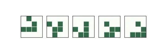 如果从随机起始状态运行 GoL,可能会出现一些稳定图案。随着时间的推移,人们已经确定了这些图案并给了它们名字