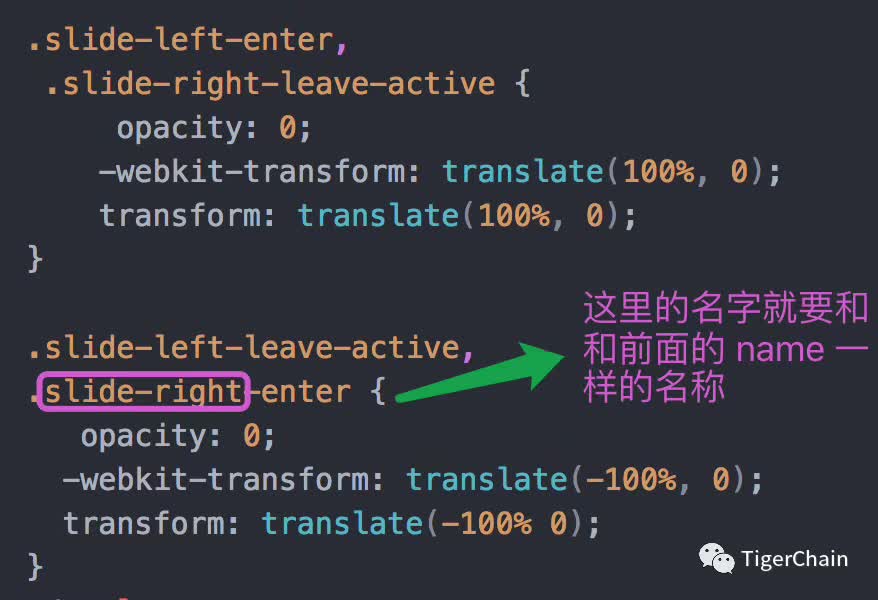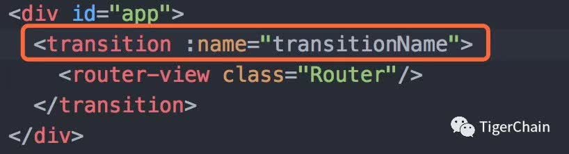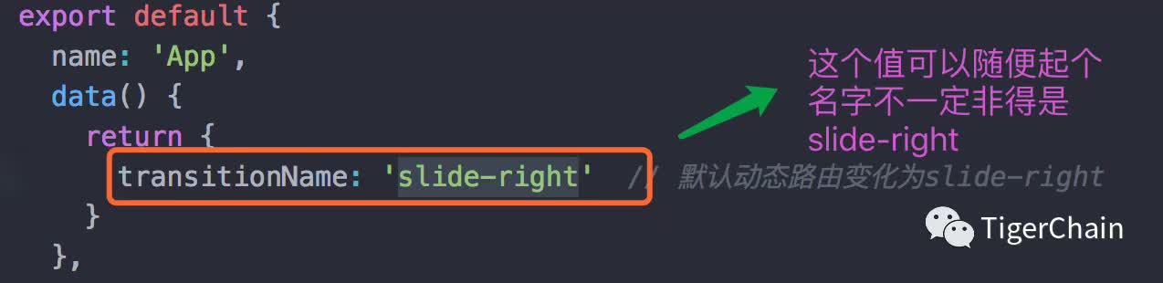 在这里我们给 transitionName 设置一个值「这个值可以随便起一个名字,这里我就叫做 slide-right,向右滑动」