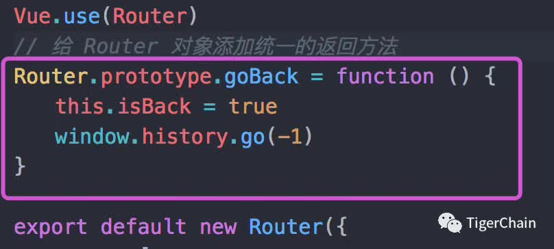 这样一来,router 就有了统一的返回方法,直接调用即可,我们修改返回按钮的返回方法如下: