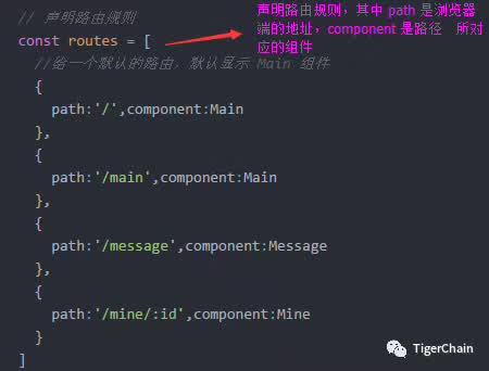 声明路由规则,把路径所对应要跳转的组件先定义出来「相当于一个配置项」,到时候浏览器地址指定到对应的路由下会自动跳转到所对应的组件「这样就完成了路由功能」