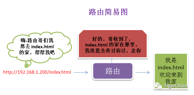 当我们在浏览器输入 http://192.168.1.200:8899/index.html 来仿问界面的时候,web 服务器就会接收到这个请求,然后把 index.html 解析出来,并找到相应的 index.html 并展示出来,这就是路由的分发,路由的分发是通过路由功能来完成的