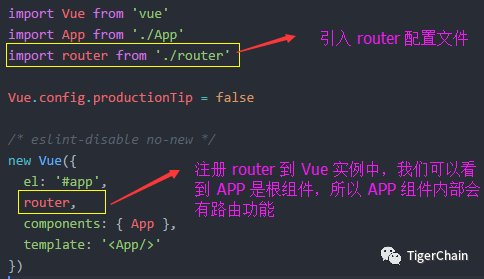 一般来说 APP.vue 就是我们应用的首页,我们在 main.js 中注入路由,从而让整个应用都具有路由功能