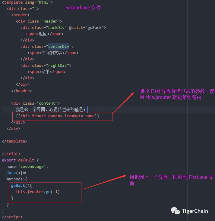 这个没有什么好说的,就是一个有导航条并且接收到 First.vue 路由跳转传递过来的参数