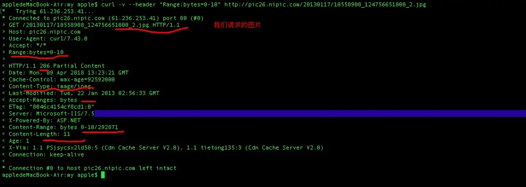 curl -v --header "Range:bytes=0-10" http://pic26.nipic.com/20130117/10558908_124756651000_2.jpg