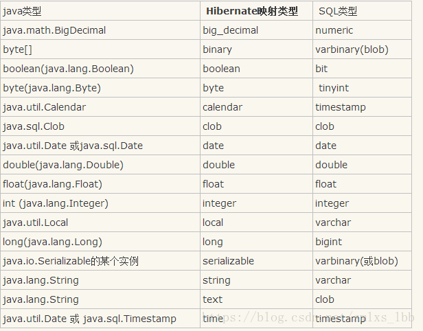 关于hibernate的映射文件中类型问题