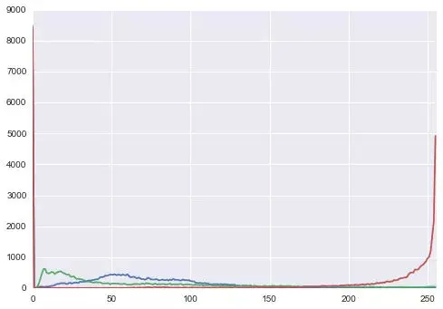 为了检测我们想要的颜色,我们可以查看烤箱灯图片中颜色的直方图。