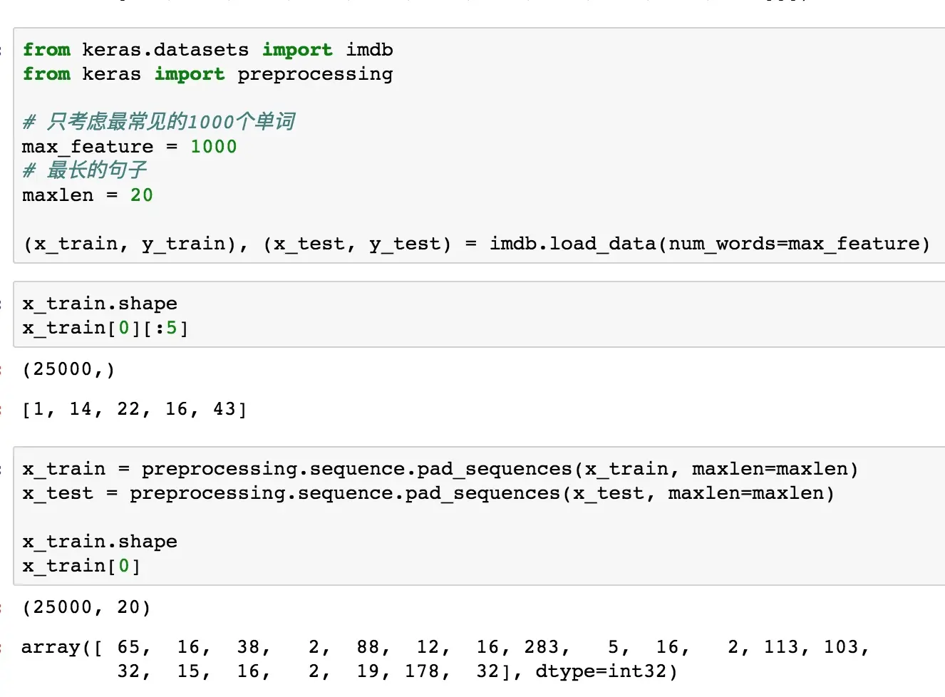 这样以后序列具有不同的长度,但是Keras更喜欢输入矢量化和所有输入具有相同的长度。我们将填充所有输入序列的长度为4,同样,我们可以使用内置的Keras函数(在这种情况下为pad_sequences()函数)执行此操作,