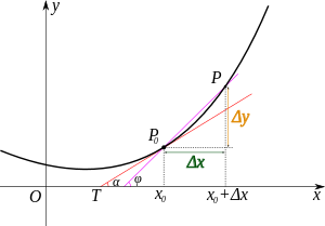 上面是导数的代数形式,下面是导数的几何形式。我们可以看到,导数,其实是围绕一个点来谈论的。当我们说一条线的导数是多少多少时,只是一个特例,恰好那条线上的每个点的导数都是同一个值。