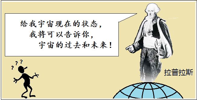 拉普拉斯是著名的数学家,他提出了一个看法:如果一个智能体,知道宇宙中每个原子确切的位置和动量,那么就可以通过牛顿定律推演出宇宙的过去以及未来;宇宙中的一切问题,都可以得到精确的解答。