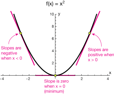1)当我的导数是一个正数时,更低点在 -X 轴的方向; 2)当我的导数是一个负数时,更低点在 +X 轴的方向; 3)那么,不管我的导数是正数还是负数,它的反方向,就是更低点的方向。 4)沿着导数的反方向走,必将走到一个相对最低点。