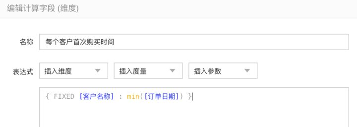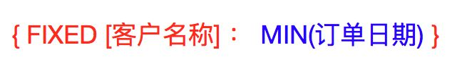注意,蓝色部分看着熟悉吧,就是刚才那个基本的数据聚合公式----最小值。红色的部分是一个新的容器,它告诉网易有数在执行蓝色部分求最小日期的时候,在哪个数据粒度进行计算,如在FIXED公式中,就是告诉网易有数,仅仅在“客户名称”这个粒度,对订单日期求最小,不考虑任何其他的粒度,也就是不考虑当前图表上的粒度。