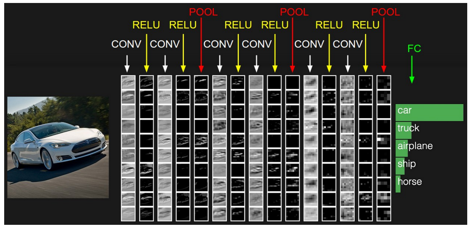 - 这意味着网络已经学会了如何通过调整其权重/过滤器并减少输出误差的方式对特定图像进行正确分类。