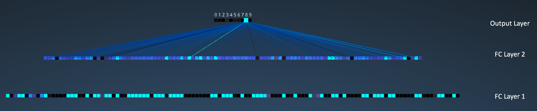 - W. Harley, “An Interactive Node-Link Visualization of Convolutional Neural Networks,” in ISVC, pages 867-877, 2015 (link). Demo
