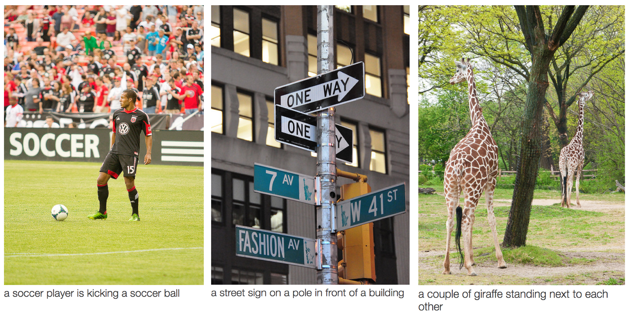 如图1所示,卷积神经网络能够识别图片的场景并且提供相关标题(“足球运动员正在踢足球”),图2则是利用卷积神经网络识别日常物品、人类和动物的例子。最近,卷积神经网络在一些自然语言处理任务(如语句分类)中也发挥了很大作用。