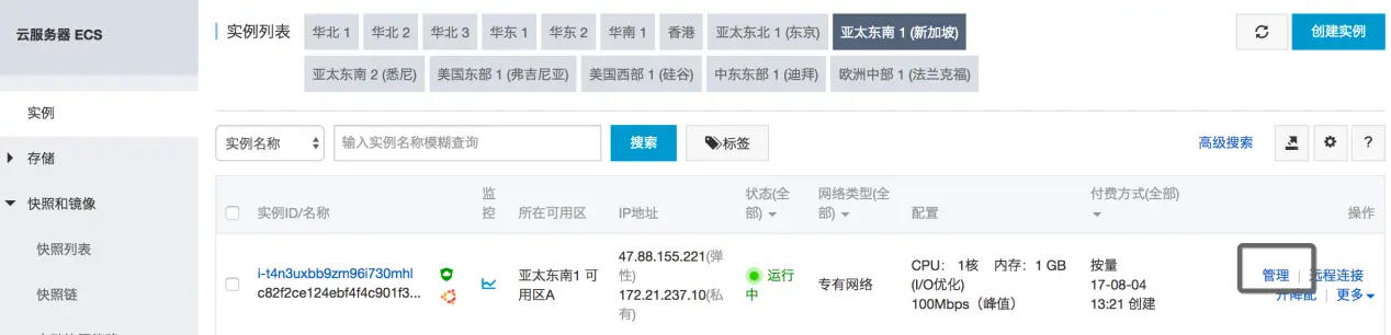 一、进入容器服务所对应的ECS所在地域,选择容易服务所在的ECS: