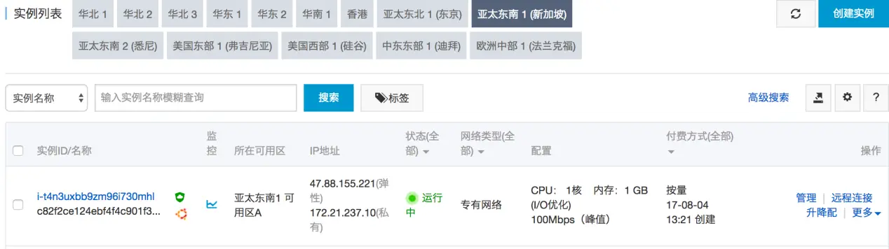 一般来说呢,我们选择一个中转文件的地域呢,第一要国内连接速度快,第二下载国外文件速度快,第三带宽资费要低。这个时候,阿里云亚太东南1-新加坡就是一个很好的选择。