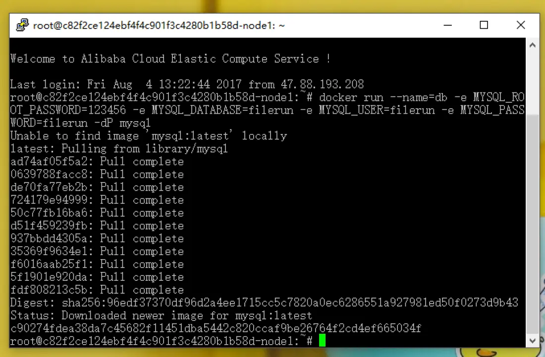 二、登入 SSH,运行下面代码以安装容器化的 MySQL:
