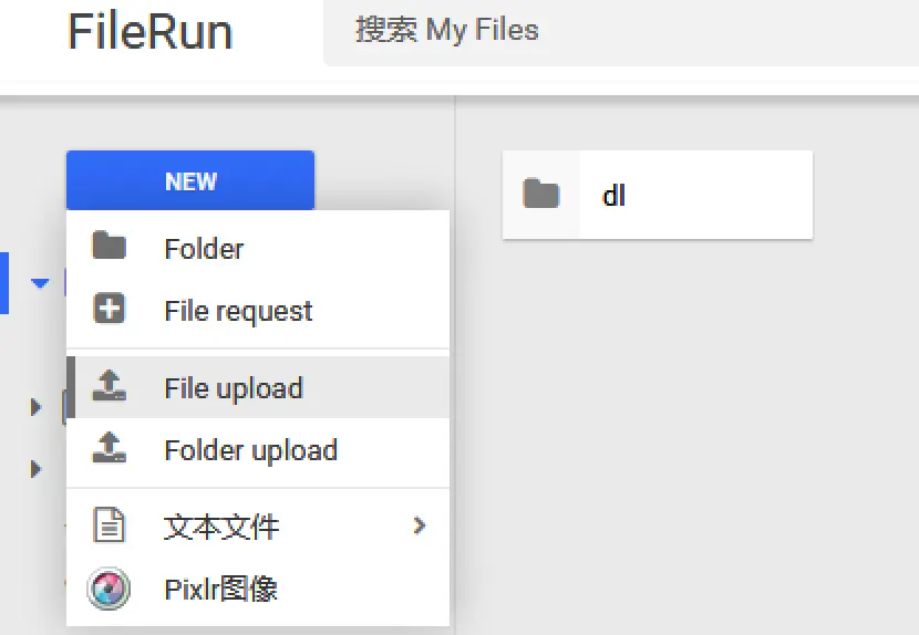九、当下载完成后,我们再回到 FileRun 的界面,进入dl目录: