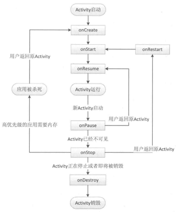 Activity生命周期 伪文艺2B男青年 2018-04-10 66 阅读1分钟 典型生命周期onCreact->onStart->onResume->onPause->onStop->onDestroyonRestart 表示正在重新启动,一般情况是一个activity从不可见到可见会调用。
