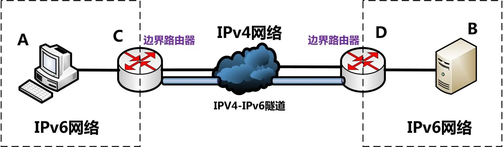 隧道技术是比较好地解决了在很长期一段时间内还是IPv4网络是主流的情况下IPv6节点(或者双栈节点)间的通信问题。但是由于IPv4到IPv6的过渡是十分漫长的,因此也需要解决IPv6节点与IPv4节点通信的问题。协议转换技术可以用来解决这个问题。