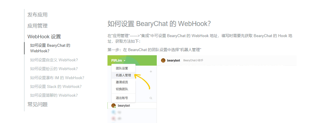 要指向自己的服务器,这个太麻烦了,这么一个小功能没有必要专门开服务(这一点还是希望fir.im可以早点对一些大平台支持)。于是只好另想办法,查找fir.im的文档发现可以接口上传安装包,那就只好迂回路线——接口上传安装包,成功后调用钉钉给出webhook地址发送推送消息。其实后面就很简单了,主要就几个接口调用而已。