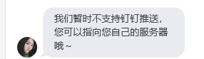 但是找到了一个自定义webhook设置,于是就进行了自定义的配置,但在钉钉上一直没有收到推送消息,无奈只好联系客服以帮助查找问题,虽然客服反应较慢但最后还是给了回复