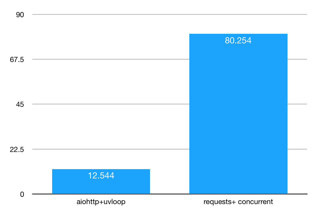 可以看到,耗时相差了大概7倍,aiohttp+uvloop的组合在爬虫这种I/O密集型的场景下,可以说具有压倒性优势。相信在不远的将来,基于asyncio的库会将无数爬虫工程师从加班中拯救出来。