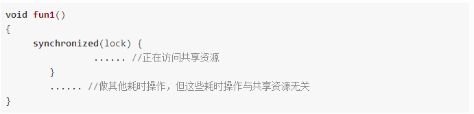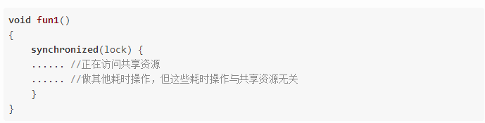 1.1.2 锁的粒度过大,对共享资源访问完成后,没有将后续的代码放在synchronized 同步代码块之外