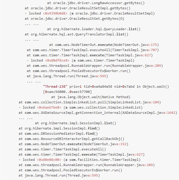 上面提到的这些原因形成的性能瓶颈,都可以通过线程堆栈分析,找到根本原因。