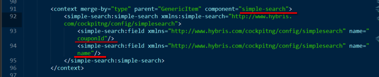 XML文件里显示Simple search实际执行时基于couponId和name两个字段进行搜索: