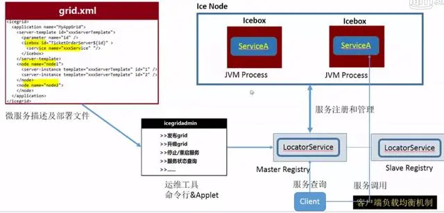 首先,微服务架构需要一个集中的服务注册中心,以及某种服务发现机制。 Icegrid服务注 册采用XML文件来定义,其服务注册中心就是 Ice Registry,这是一个独立的进程,并且提供 了HA高可用机制;对应的服务发现机制就是命名查询服务,即 Locatorservice提供的API,可 以根据服务名查询对应的服务实例可用地址。